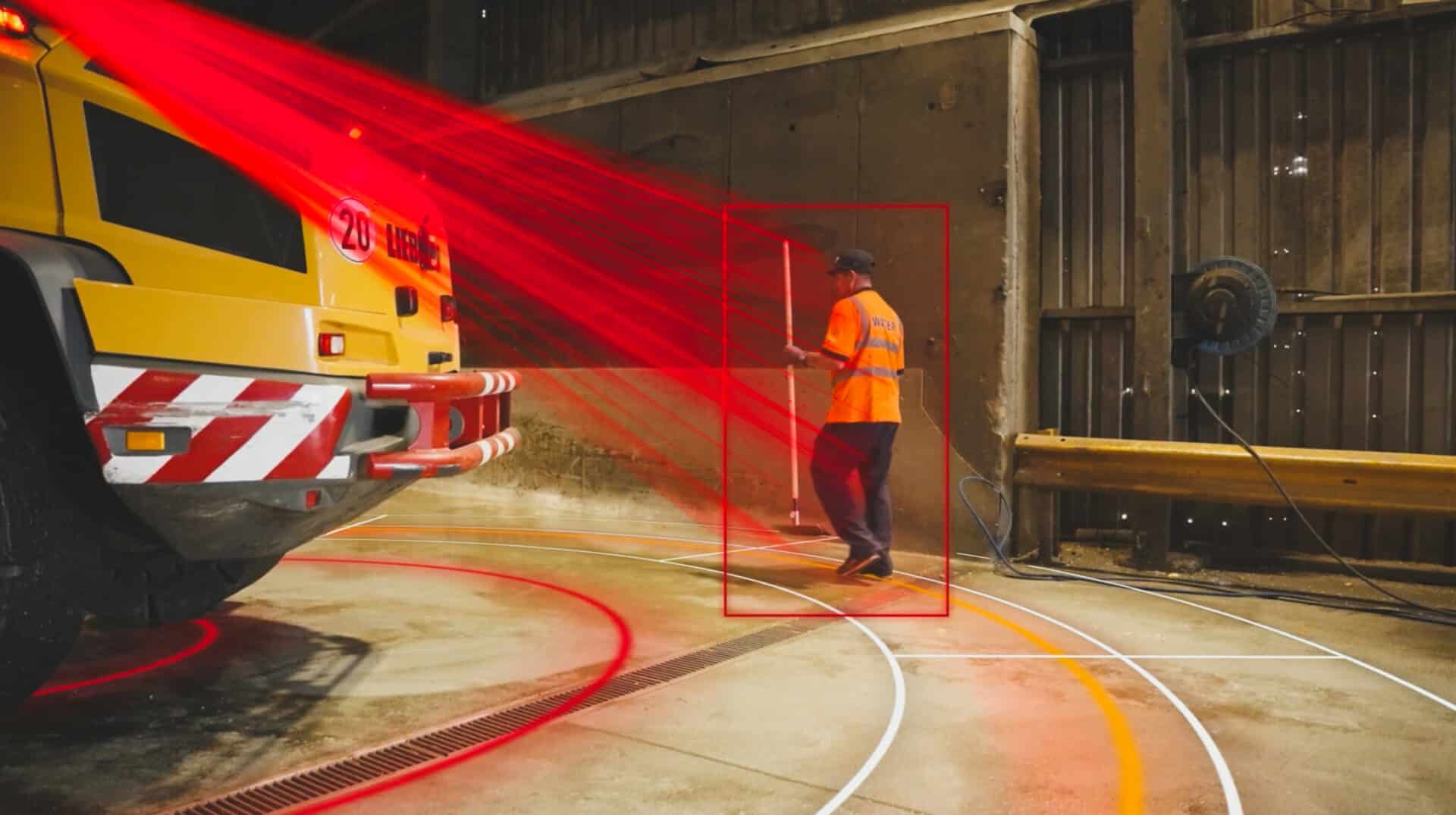 Advanced pedestrian detection AI accurately picks up human silhouettes and movement, if a pedestrian is detected in the exclusion zone, both are alerted.